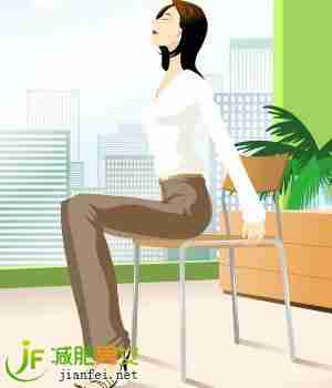 回到座位后双手扶住椅子的两侧扶手,保持上半身直立并且收腹抬头挺胸,缓缓抬起伸直双腿,让腿部与上半身的夹角达到90度时停住,坚持15秒后逐渐放下腿部。此法重复5次能紧致腿部肉肉,促进腿部淋巴循环和血液排毒。这两个动作至少上午和下午各做一组,对塑造腿部形态很有帮助。