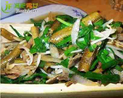 原料:绿豆芽二两、鳝鱼三两、甜椒一个、绿菜椒一个切丝、老姜一小块切丝、盐适量、淀粉一大匙、味精适量加水调成芡汁。