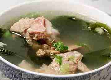 ②倒入冷开水,放入洗净的海带丝大火煮开转小火炖熟,再放入藕片稍煮,加盐调味即可。