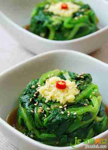 所有新鲜的绿叶蔬菜对于减肥是有效果的,因为含丰富的膳食纤维。绿叶菜中多为碱性,可以中和饮食中糖、肉、蛋及代谢中产生的过多的酸性物质,使体液保持弱碱性,从而清除血中有毒物。常食蔬菜可选萝卜叶、青菜、油菜叶、菠菜、芥蓝、大白菜、胡萝卜、菜花、甘蓝等。