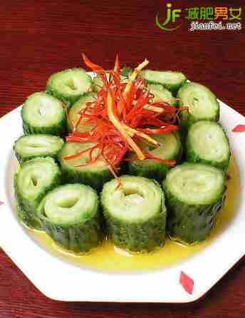 点评:青瓜中含有很多蛋白质、维生素和微量元素,多吃不仅可以补充人体营养还能促进消化;辣椒促进消化,搜刮肠道内的油脂,两者搭配能起到很棒的瘦身减肥的效果。