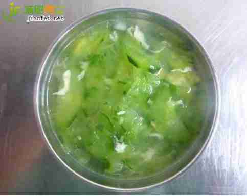 (1)黄瓜鸡蛋汤黄瓜含有丰富的维生素C,能促进消化吸收,所含的丙醇二酸,可抑制糖类物质转变为脂肪。纤维素对促进人体肠道内腐败物质的排除和降低胆固醇有一定作用。