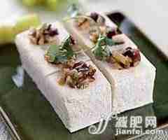 (3)将馅料酿入豆腐中心,摆在碟上蒸熟,淋上酱油、香油即可食用。