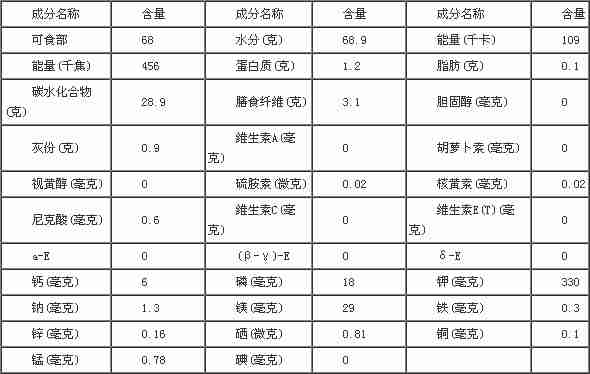 (二)、芭蕉(甘蕉,板蕉,牙蕉)的营养成分列表