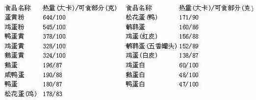 > 蛋类食物热量表