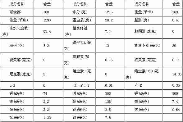 (四)、赤小豆[小豆,红小豆]的营养成分列表