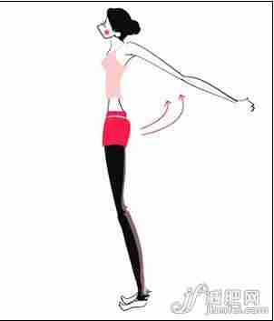 Step2、双腿并拢,身体挺直站立,左手自然放下置于左边大腿外侧位置,右手与肩部成45度往后面伸出,动作持续20秒,然后换边重复动作。