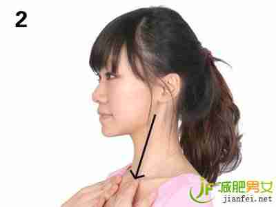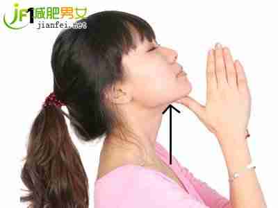 两手屈肘,合掌,拇指顶住下巴中间凹陷区域。慢慢地利用拇指力量将下巴向上推,头抬起,然后再慢慢放下。
