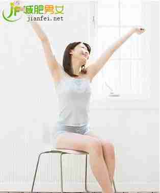 两手向后渐渐抬气,配合短促呼气,手臂向后抬起至最大程度,反复10次,注意呼吸。